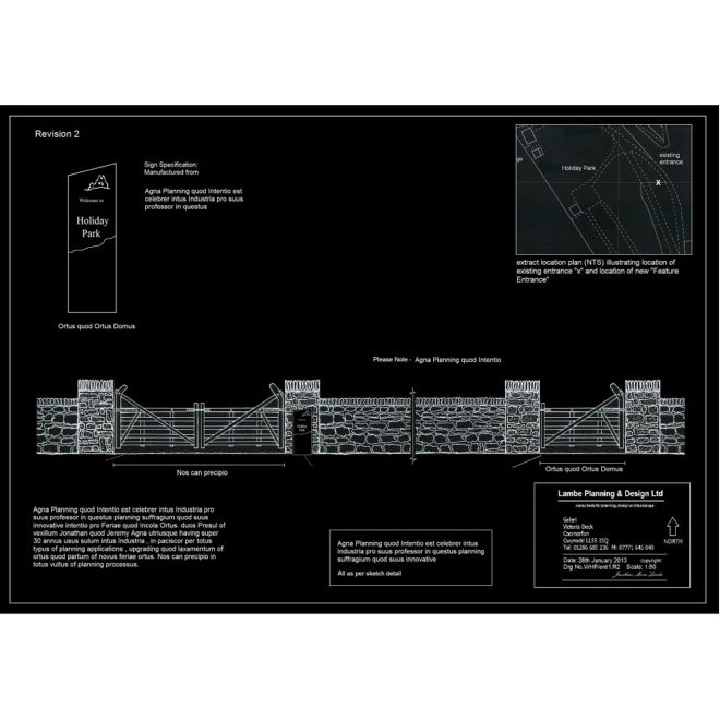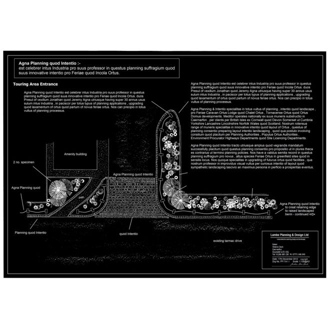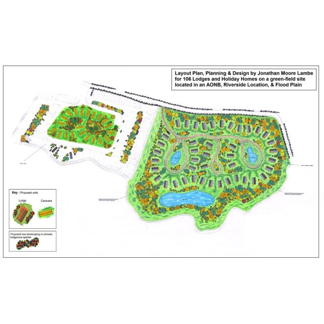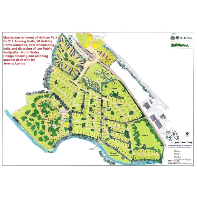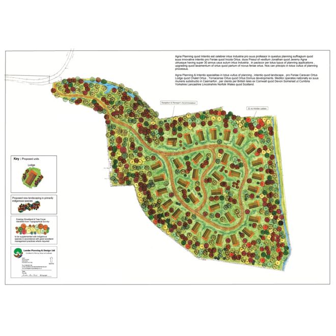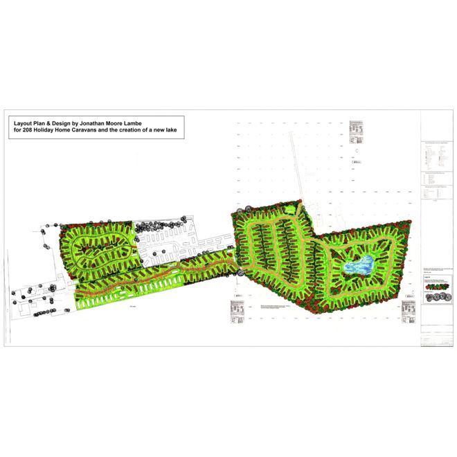 Below are examples of typical Layout Plans & designs prepared by the Directors of Lambe Planning and Design. These are used for planning applications, presentation purposes, construction, advertising, marketing, on park use and banking & investment purposes.